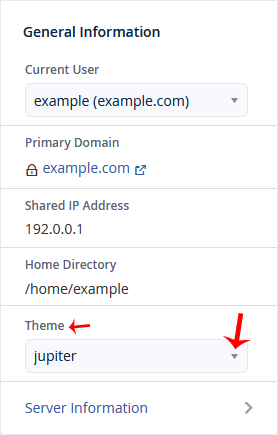2. In the General Information panel. You should see a Theme option with a drop-down menu.