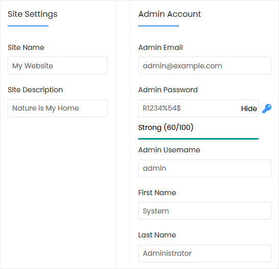 • Admin Email: Your e-mail address.