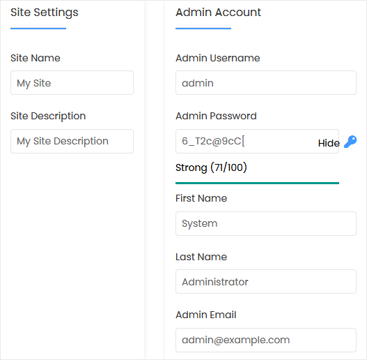 • Admin Email: Your e-mail address.