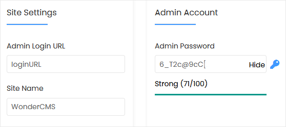 • Site Name: Enter the name of your website, such as WonderCMS.