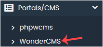 4. On the left side, locate the Portal/CMS category. Click on it and then on the WonderCMS link that appears.